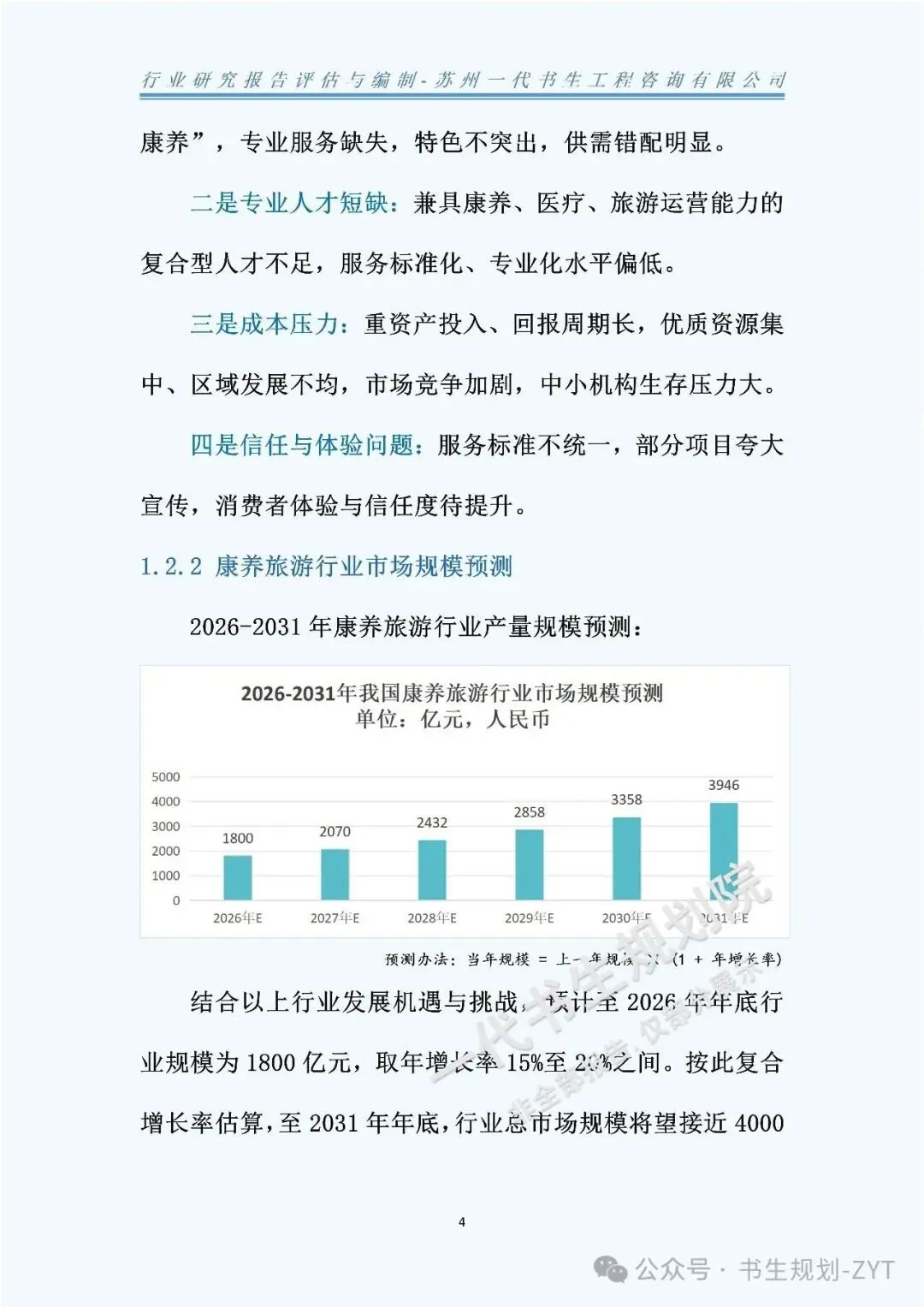 以上《2026年-2031年我国康养旅游行业市场分析调研报告》是由苏州一代书生工程咨询有限公司出具。