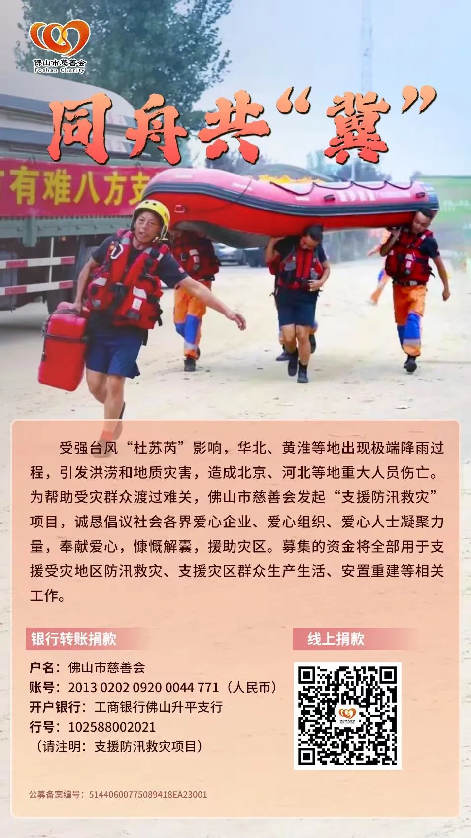 佛山市民政局和佛山市慈善会倡议书发出后,各区慈善会立即行动共同发动社会募捐。截至2023年8月10日16时,佛山市慈善会系统共募集善款1231769.12元。