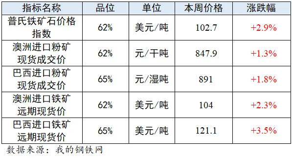 1.铁矿石价格(市场以普氏62%价格指数为定价基准)