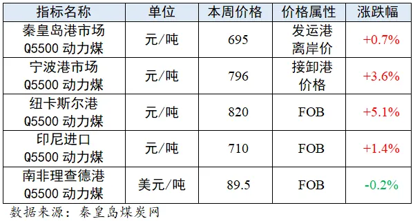 5.澳大利亚纽卡斯尔港Q5500动力煤离岸价
