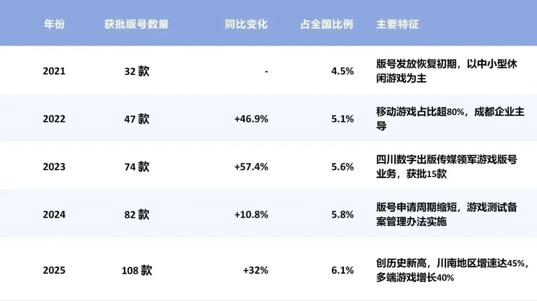 2026年3月,四川电子竞技协会发布了《2025年四川省电子竞技产业报告》。报告显示四川电竞产业营收规模达120.6亿元,四川全省现有电竞活跃用户规模为4257万人,较去年增长200万人,电竞相关企业公司10436家,四川省内举办的电竞赛场超200场,较2024年有巨幅提升。四川省作为中国西南地区的经济文化重心之一,其电竞产业的发展拥有巨大的市场以及潜力。在四川,电竞产业得到了省市各级政府的大力支持,以促进产业的快速、稳健发展。同时,四川省作为电子竞技产业发展的先锋,致力于打造国家级电子竞技产业基地,并推动“大电竞”产业链的形成。2025年四川省电子竞技产业总产值达120.6亿元,其中游戏研发及发行板块总产值为90亿元,电竞赛事板块总产值为3.5亿元,电竞俱乐部板块总产值为4.5亿元,电竞陪玩板块总产值为3.14亿元,网吧/网咖板块总产值为8.76亿元,电竞酒店板块总产值10.09亿元,电竞教育板块总产值为3500万元,电竞衍生业务板块总产值超过1500万元。其中,电竞赛事运营较去年产值有所上升,电竞陪玩产业成为总体产业的新增长极,主要得益于本土赛事承接能力的提高以及陪玩产业的规范化。截至2025年全省电竞相关企业达10436家,其中游戏研发企业占比超4成,达4090家;专业赛事运营机构达98家;电竞酒店数量增至1601家;网咖/网吧数量增至4412家;电竞俱乐部233家,其中职业电竞俱乐部超过20家;电竞教育机构12家,以上数据均为2025年正常经营和存续企业。2024年,四川省电子竞技项目市场收入稳步增长,主要得益于本地企业的创新能力和市场拓展。其热门游戏类电竞项目如《王者荣耀》《三角洲行动》《多多自走棋》《曙光英雄》《JJ斗地主》均在四川乃至全国拥有庞大的玩家基础,游戏内消费活跃。2025年,四川省共获得108款国产网络游戏版号(不含审批变更),占全国总发放量(1771款)的6.1%,同比2024年增长32%。2025年,四川省全省电子竞技活跃用户增加至4257万人,较2024年增加约200万人。其中男女比例基本保持不变,未来还可以进一步开发女性市场。