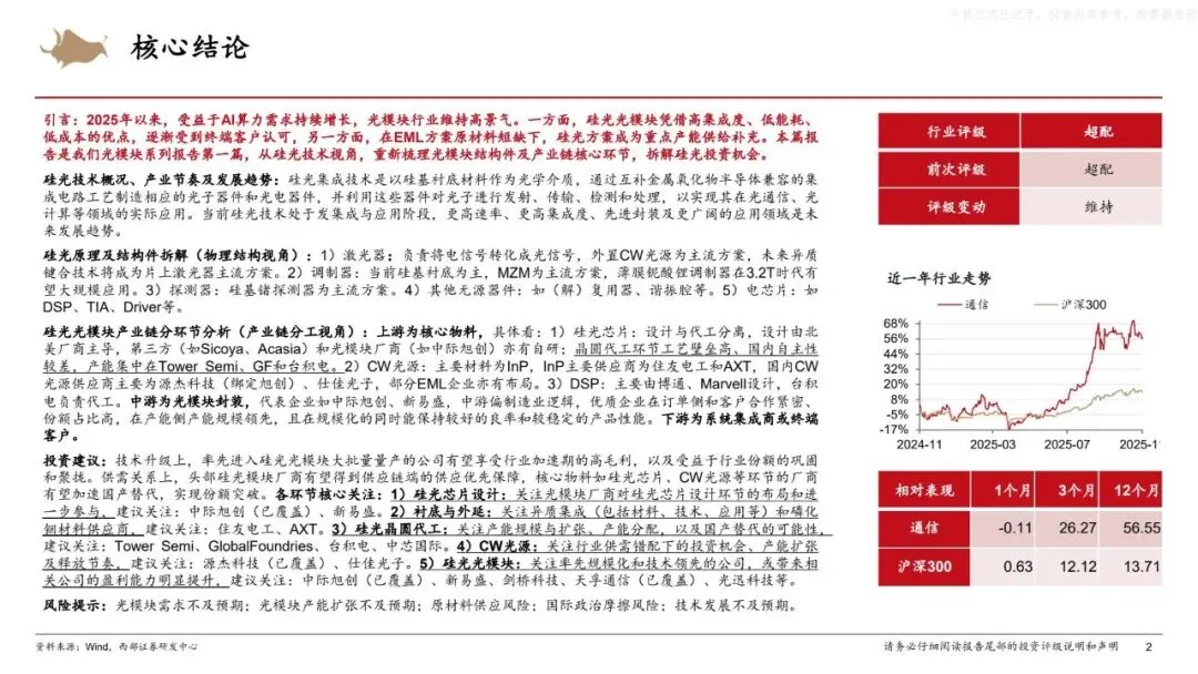 - 产业端:CPO、3.2T 高速率、薄膜铌酸锂等技术升级,带来细分环节投资机会