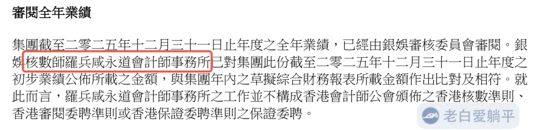 下边是银河娱乐的2025年度业绩公布中的核数师相关讯息。这里罗兵咸永道其实也就是我们常常听到的普华永道,只不过是香港地区的译名:
