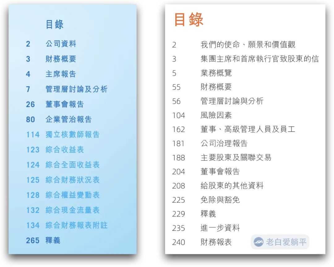 下图中左侧是腾讯的2024年年报, 右侧则是阿里巴巴的年报: