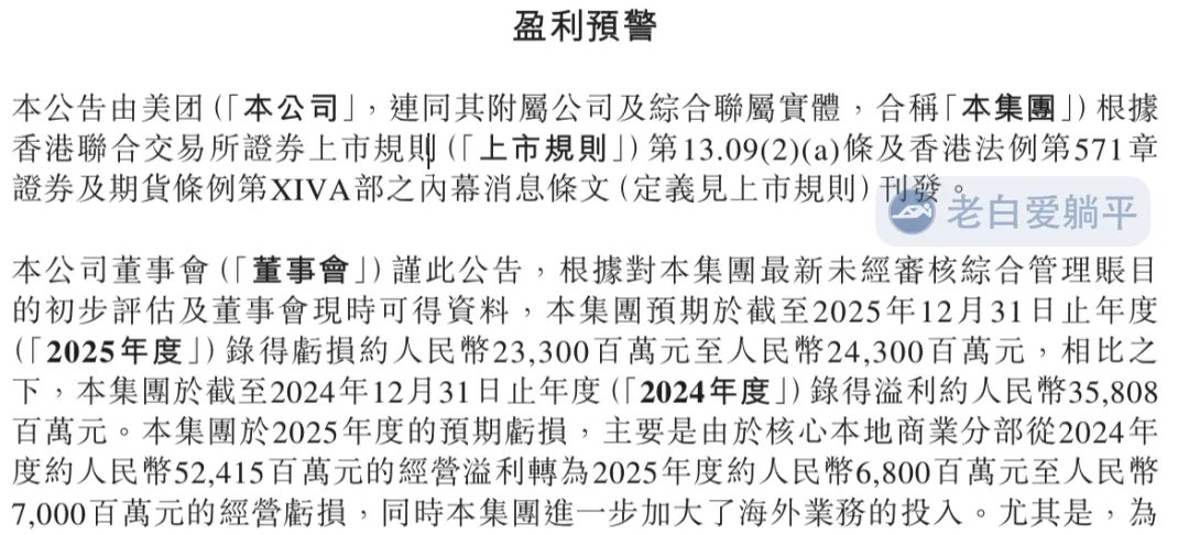 第二个例子是美团对2025年业绩的预亏: