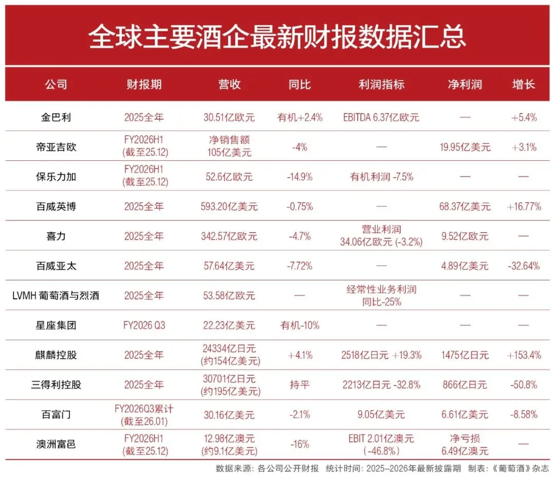随着2025年报季落幕,全球酒业巨头的成绩单悉数出炉。从百威、喜力的啤酒阵地,到保乐力加、帝亚吉欧的烈酒江湖,甚至LVMH麾下的顶级庄园,一份份数据勾勒出当前行业的复杂底色:关税壁垒重构贸易秩序、中国市场加速失速、美国消费持续退潮。