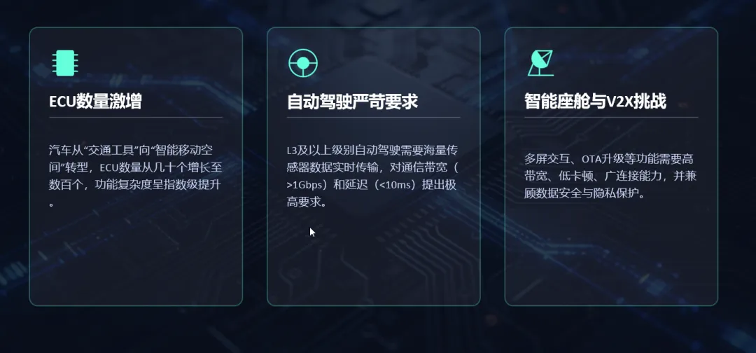 随着汽车电子设备数量的增加,ECU数量激增导致线束长度和重量大幅上升,不仅推高整车成本,还降低了系统集成效率和可靠性。