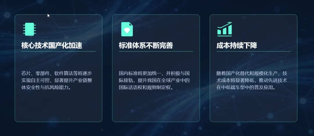 随着核心技术的国产化替代、产业链的完善以及规模化生产,车载通信网络的成本将持续下降,逐步在中低端车型中普及应用。一方面,国产化芯片、零部件的量产,将降低硬件成本;另一方面,技术的成熟与规模化应用,将降低研发与测试成本,推动车载以太网、TSN、V2X等技术的普及。同时,企业将通过技术创新,优化网络架构,降低网络的部署与维护成本,进一步推动通信网络技术的普及应用,让更多用户享受到智能化汽车带来的便利。
