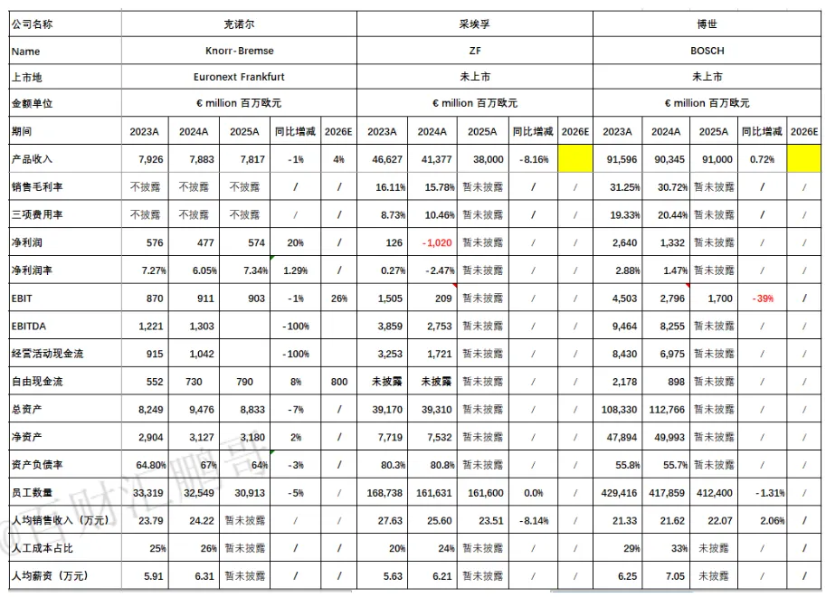 德系的克诺尔表现稳定强劲,ZF和BOSCH净利润波动较大。