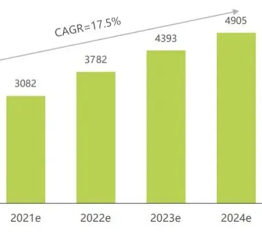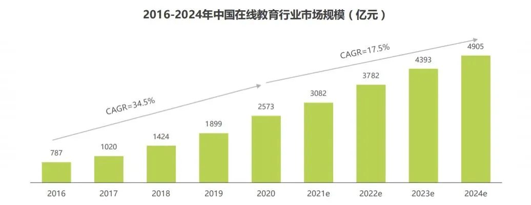 艾瑞咨询预测中国在线教育行业市场规模在2021年~2024年增长数据