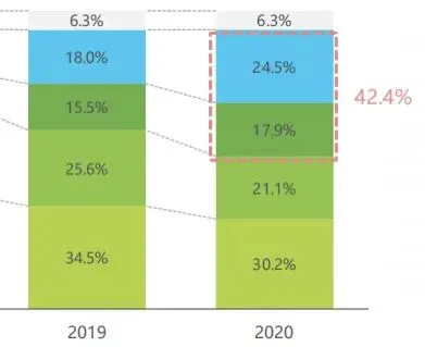 2019年和2020年中国在线教育细分结构占比