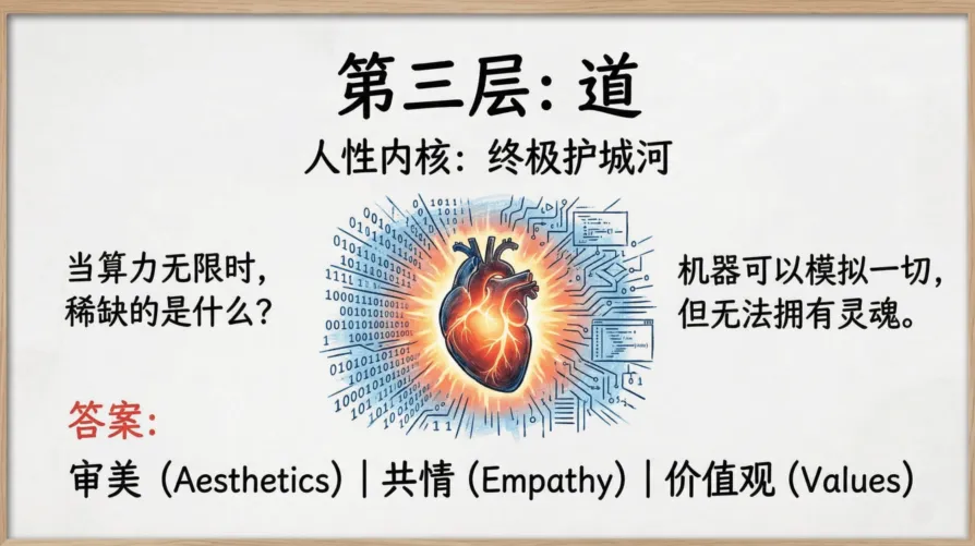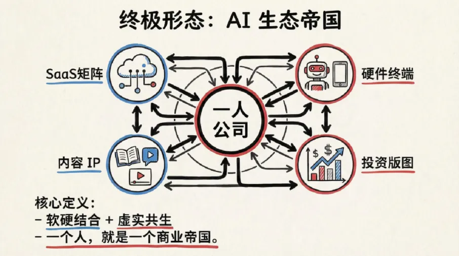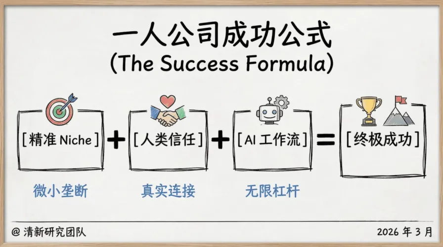 ? 机器可以模拟一切,但无法拥有灵魂。在一人公司里,你的核心职责不再是“执行”,而是“编排”——做那个给AI注入价值观、把控审美、提供独特视角的人。
