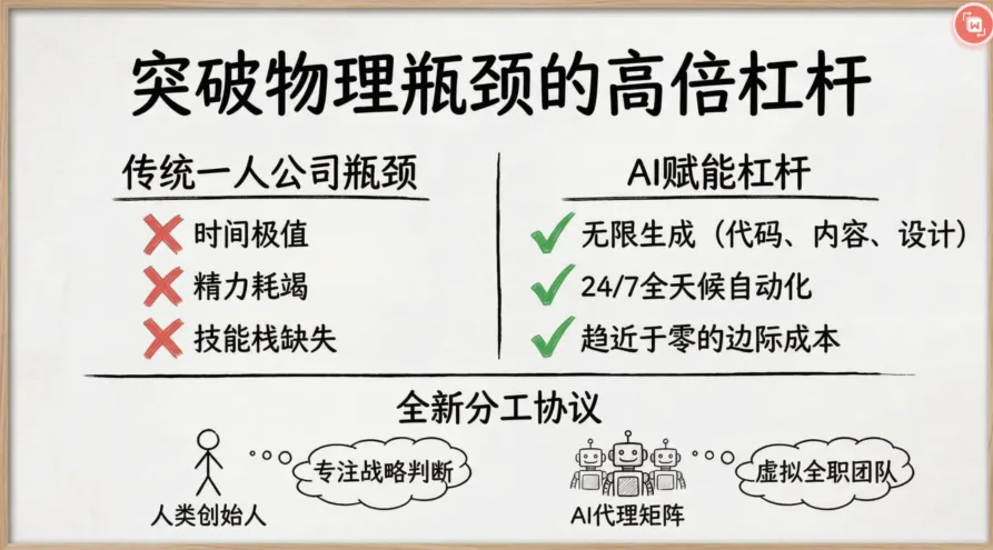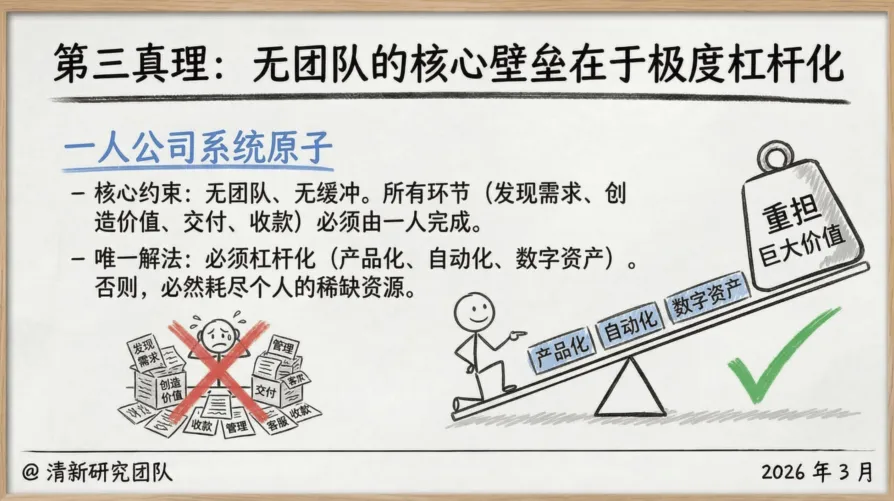 这是一人公司最性感的地方。你不再是靠出卖时间换钱,而是靠“杠杆”撬动价值。