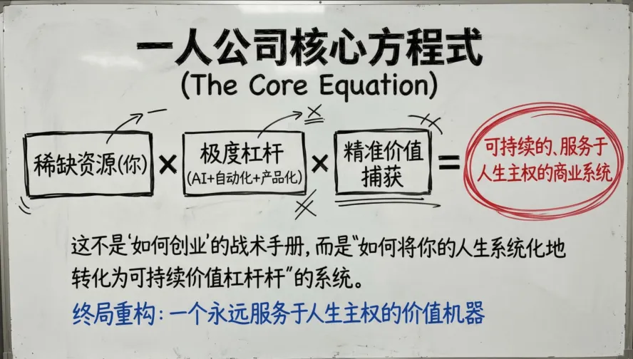 一人公司,不是教你如何创业的战术手册,而是教你如何将自己的人生系统化地转化为可持续价值杠杆的系统。