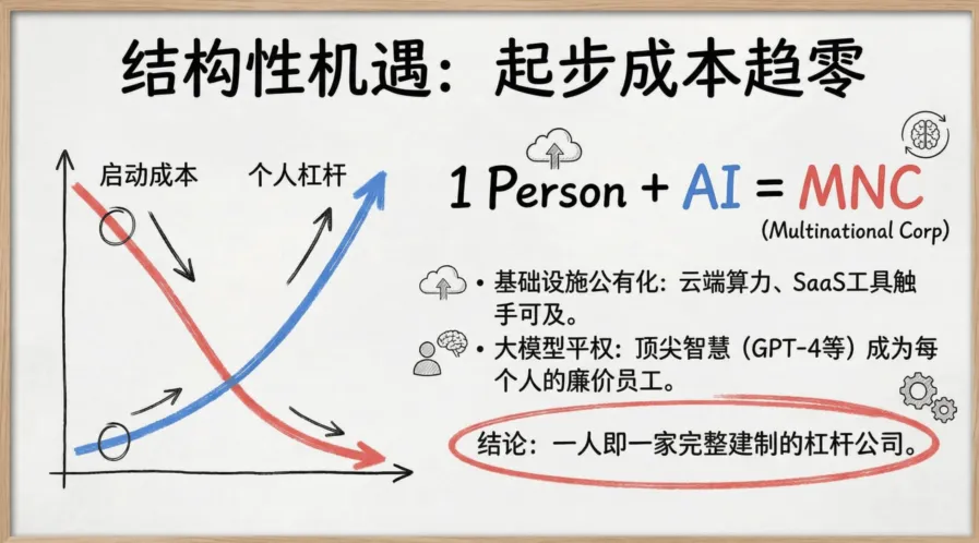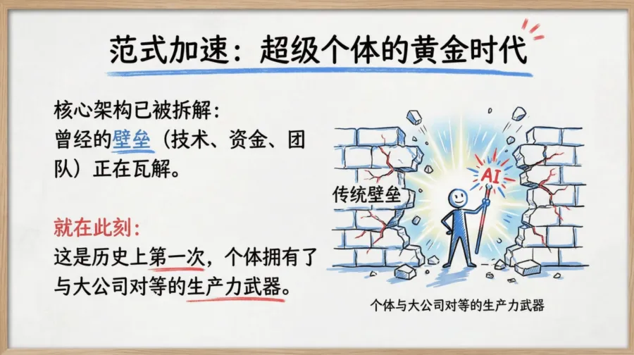 我们正处在一个伟大的历史拐点。曾经只有大公司才拥有的生产力武器,现在正在被下放给每一个个体。