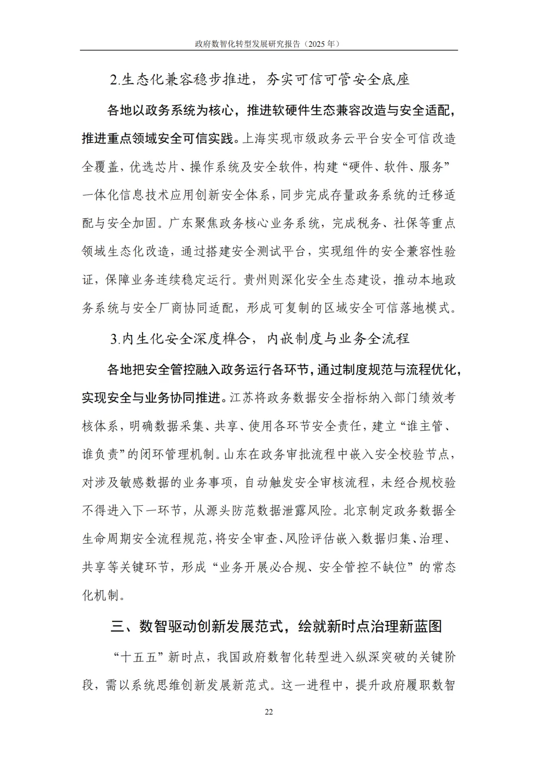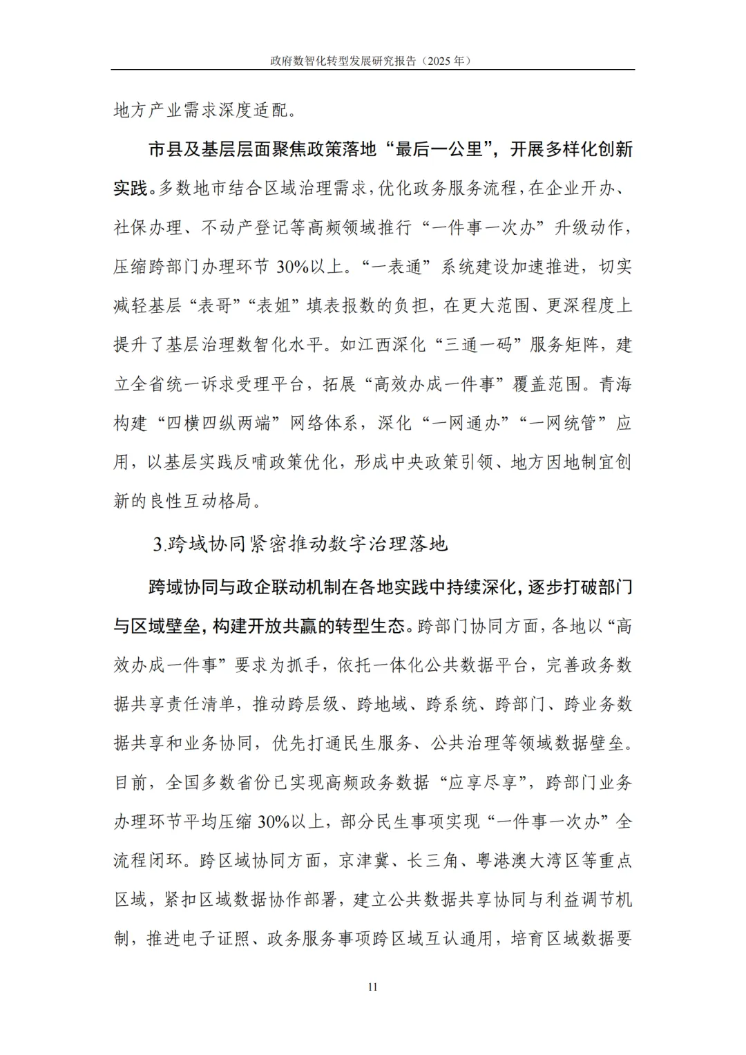 数字治理机制系统化:国家层面出台政策矩阵形成三位一体支撑,地方省市县分层推进,跨域、政企联动打破壁垒,高频政务数据共享率提升,跨部门办理环节平均压缩 30% 以上。