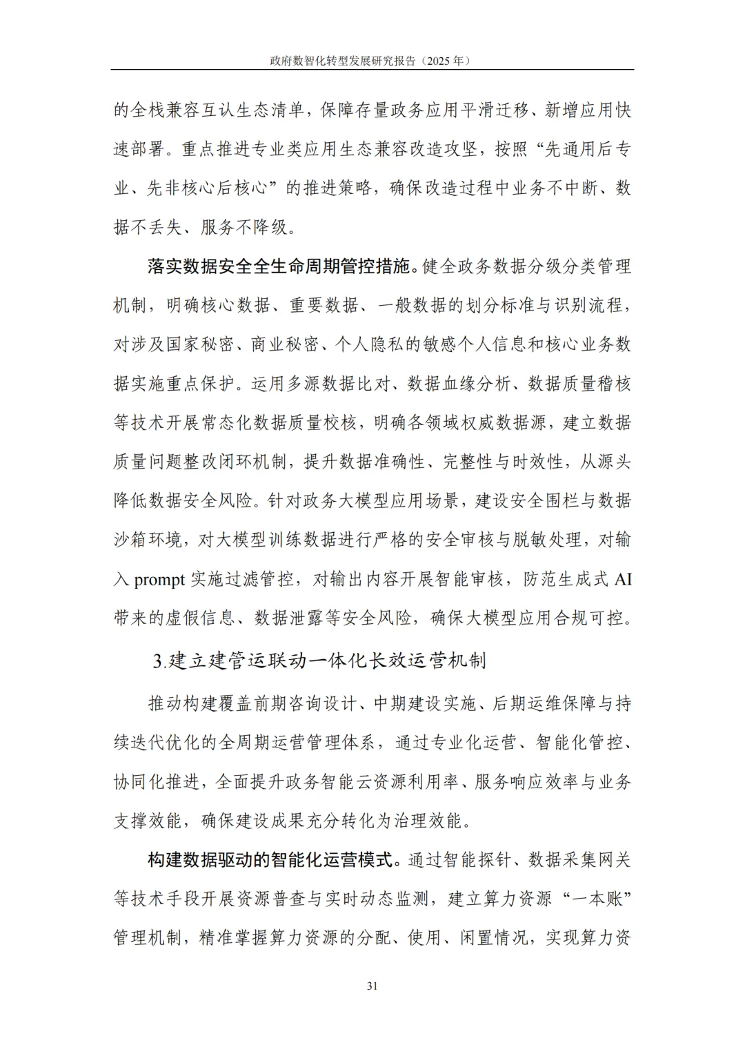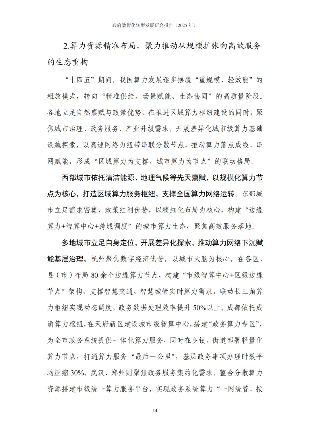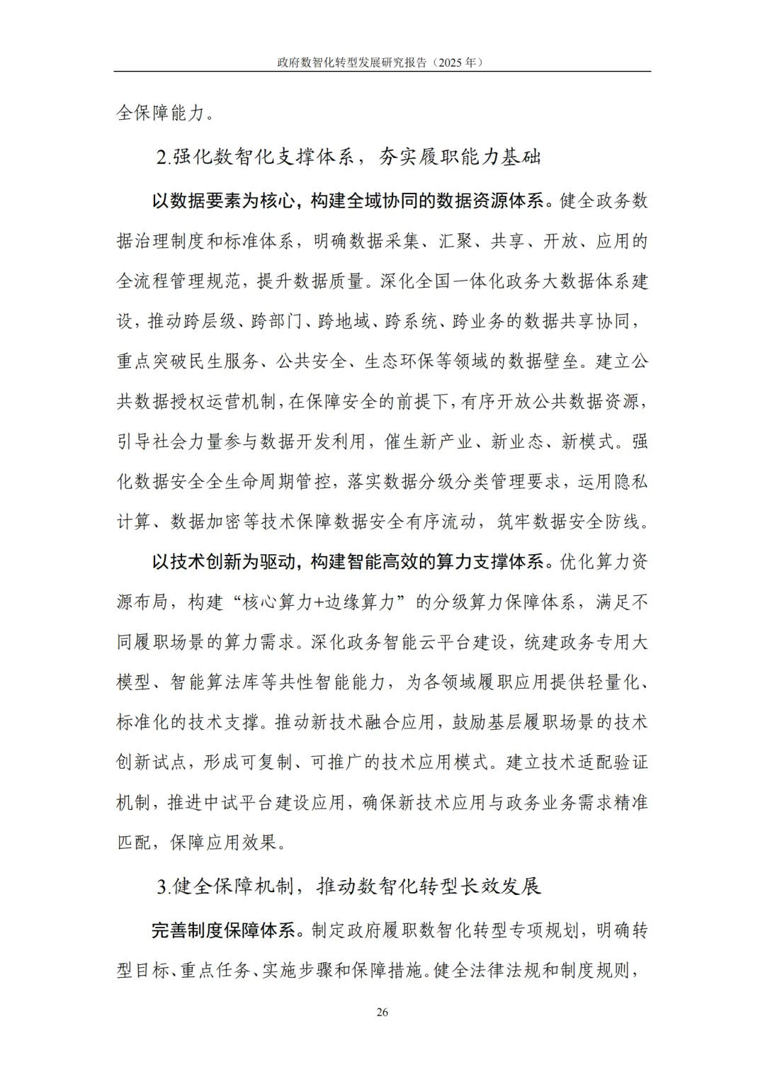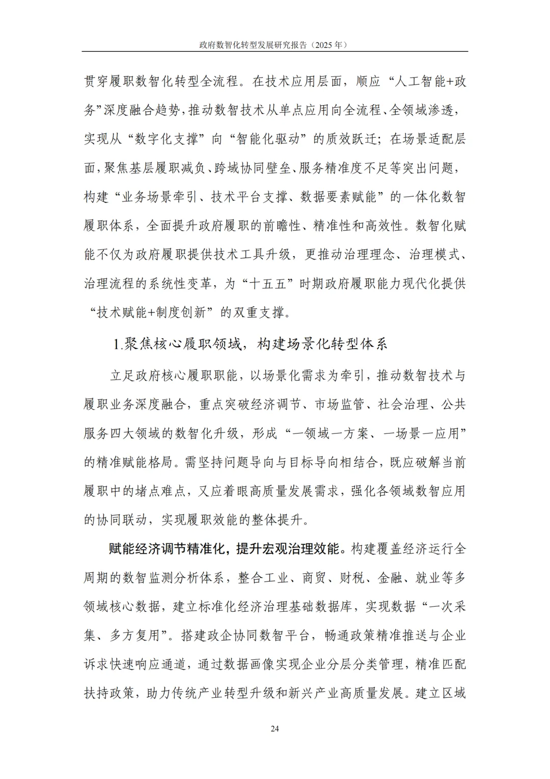 提升政府履职能力数智化水平:聚焦经济调节、市场监管、社会治理、公共服务四大核心领域构建场景化转型体系,强化数据、算力支撑体系,完善制度、人才、考核评价保障机制。