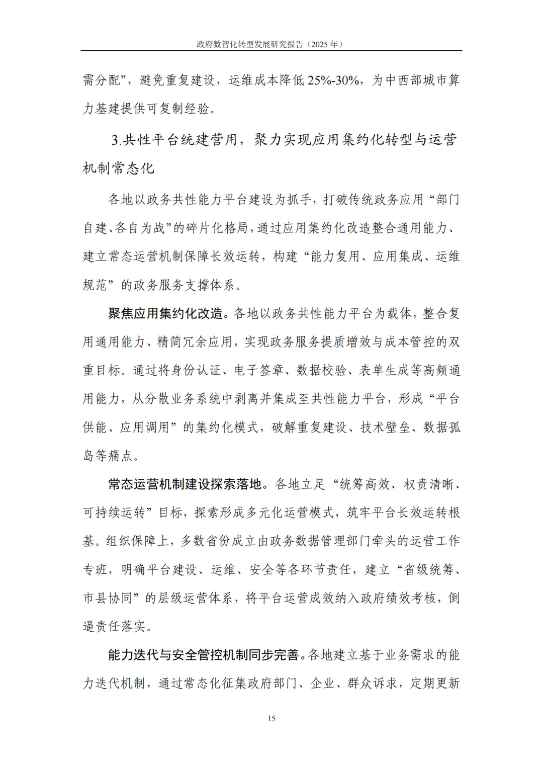 能力供给:技术深度融合推动数字公共能力底座从 “资源供给型” 向 “服务适配型” 转型,实现四级全域一体化,完善统一标准体系,降低基层建设成本。