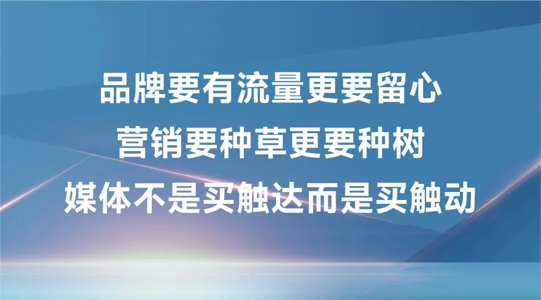 品牌要有流量更要留心,人心是最大的红利,品效需要再平衡。营销要种草更要种树,海量种草时代结束,现在是草原上种草而且杂草毒草丛生,品牌中心思想要真正让消费者记住,真正植入心智当中才是有效的。媒体不是买触达而是买触动,增长的前提不仅仅是媒体高触达,更要高关注,还要高频次,才能有效触动消费者行为改变,成为销售增长的强大的助推器。
