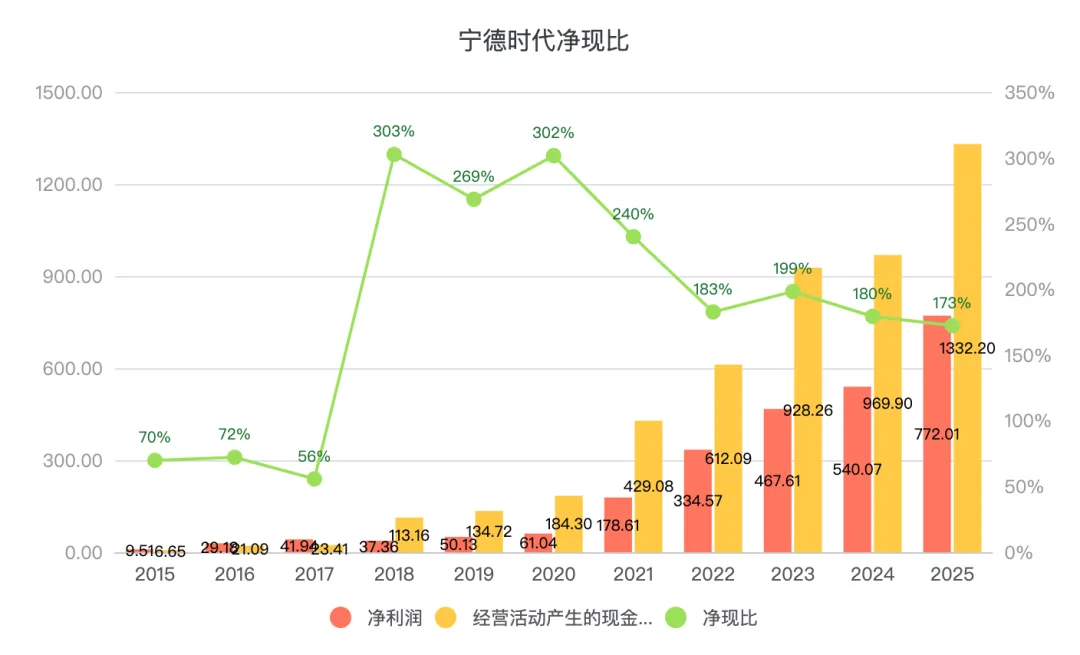 总体来看宁德时代2025年尤其是Q4的盈利能力大幅超预期。之前机构对全年归母净利润的预期是680-700 亿元,实际为722.01亿元,超出预期约5个百分点。Q4归母净利润预期为181-190 亿元,实际为231.67 亿元,比预期高约 25% 。