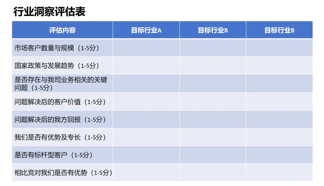 附表:客户行业洞察评估表