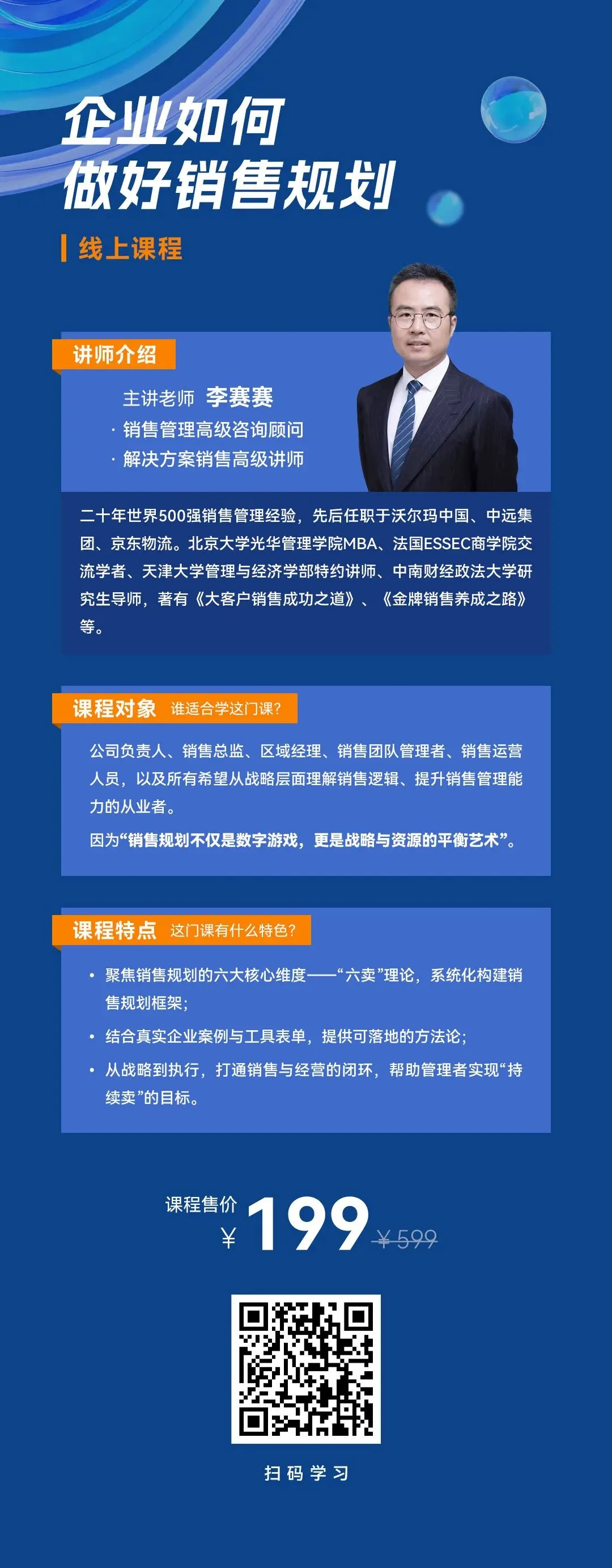 ps:洞察到客户需求后,老师近日上架的新课程将直接助力下一阶段:《企业如何做好销售规划》可点击阅读原文或者扫描下方海报二维码进入学习~
