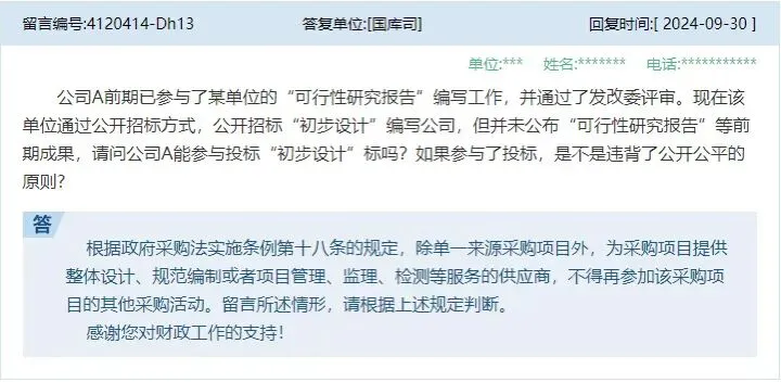 公司A前期已参与了某单位的“可行性研究报告”编写工作,并通过了发改委评审。现在某单位通过公开招标方式,公开招标“初步设计”编写公司,但并未公布“可行性研究报告”等前期成果。公司A能参与投标“初步设计”标吗?如果参与了投标,是否违背公开公平的原则?