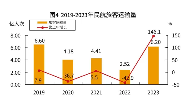 中国民航业在疫情后迅速恢复,2023年旅客运输量同比暴增 146.1%,但繁荣之下,隐忧重重: