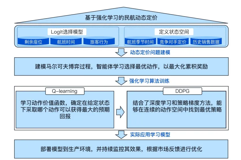 动态定价:AI不再依赖历史数据和季节性规律,而是实时根据市场需求、竞争对手、旅客购买意愿,动态调整票价,目标是缩小“实际价格”与“旅客支付意愿”之间的差距,实现收益最大化。
