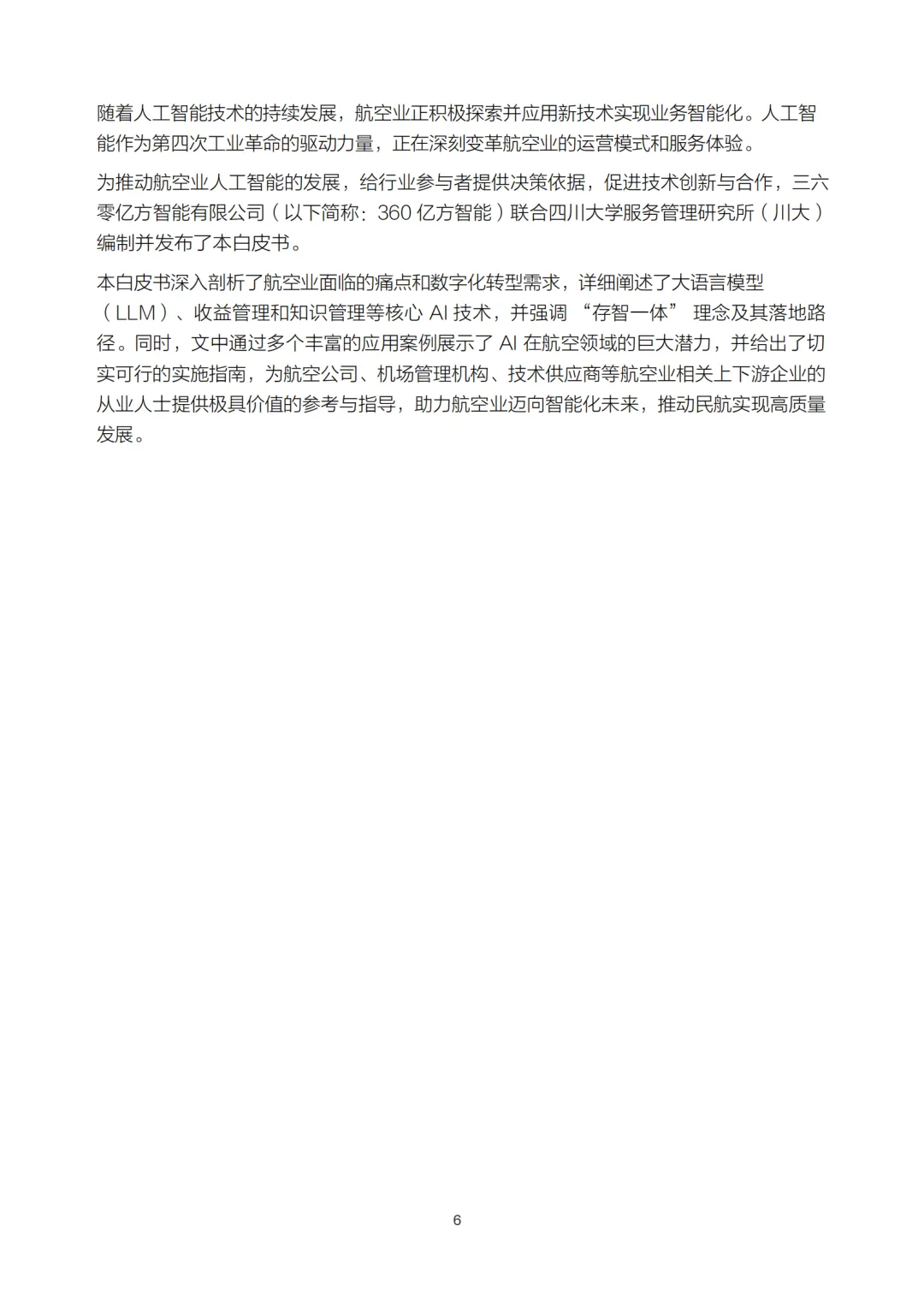 2025年,360亿方智能联合四川大学服务管理研究所发布了《360亿方智能2025航空AI白皮书》。这份报告旗帜鲜明地指出,AI正在像蒸汽机之于工业革命一样,深刻重塑航空业的运营模式与服务体验。