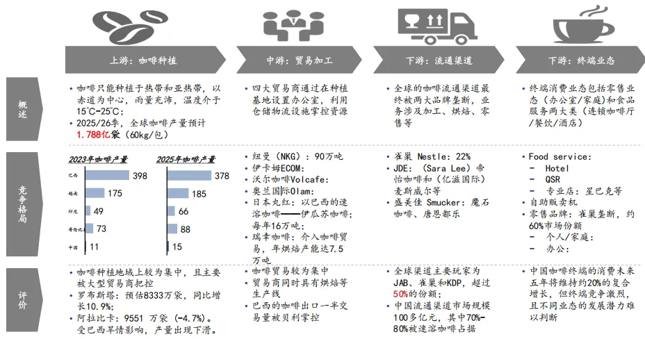 2025/26季,全球咖啡产量预计 1.788亿袋(60kg/包)。