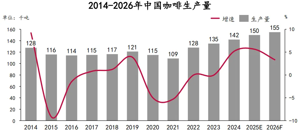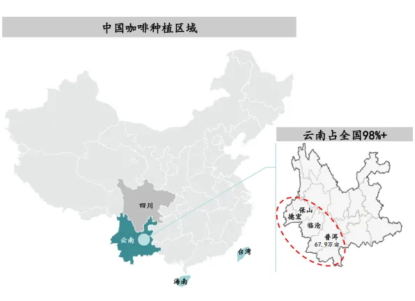 1.从扩面转向提质:中国咖啡种植(面积和产量)不足全球的2%,种植面积趋于稳定,已经转向高质发展阶段。