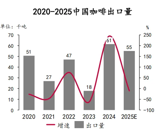 中国咖啡出口量趋于平稳,出口额因品质提升和加工增值不跌反升。
