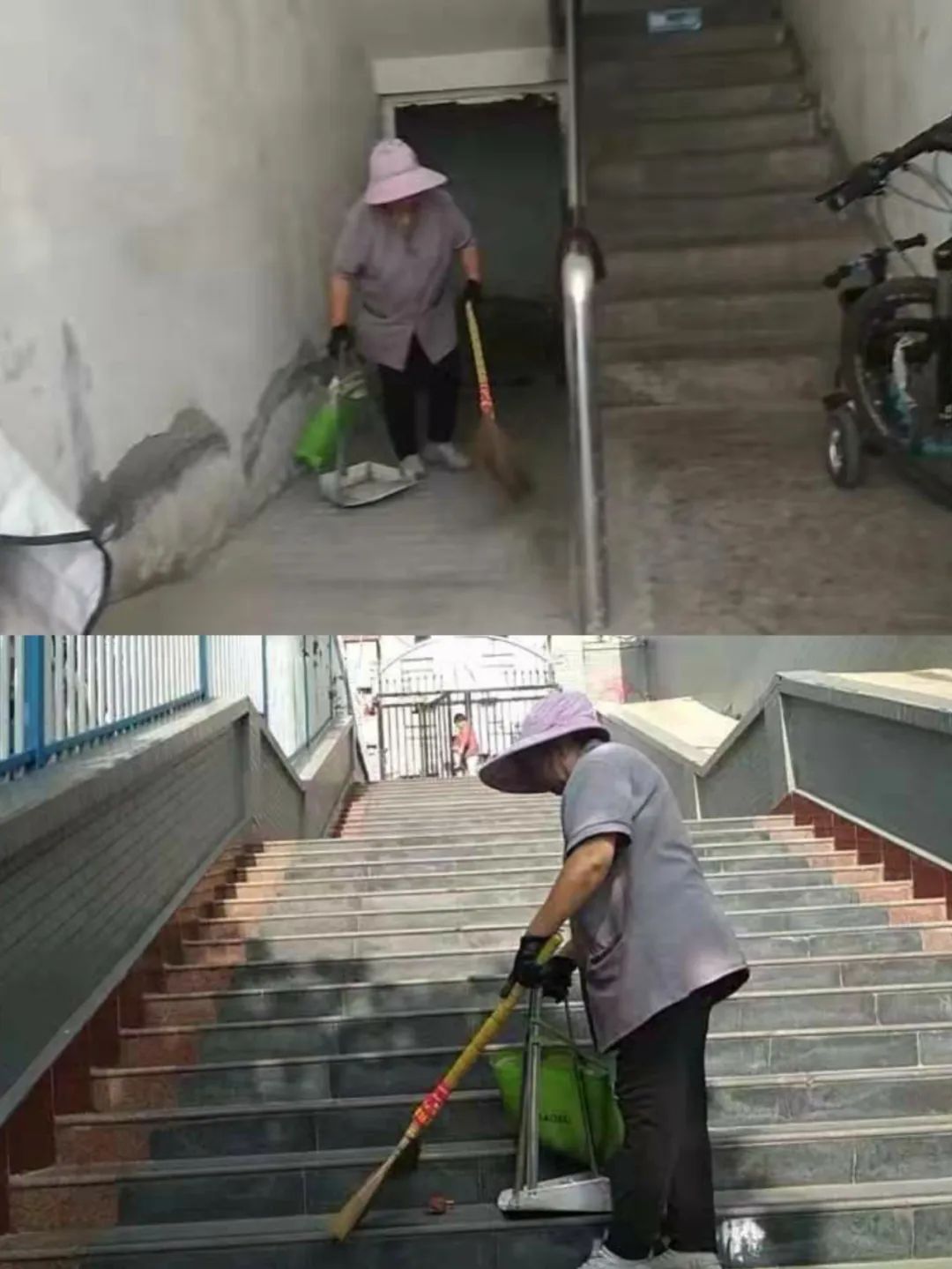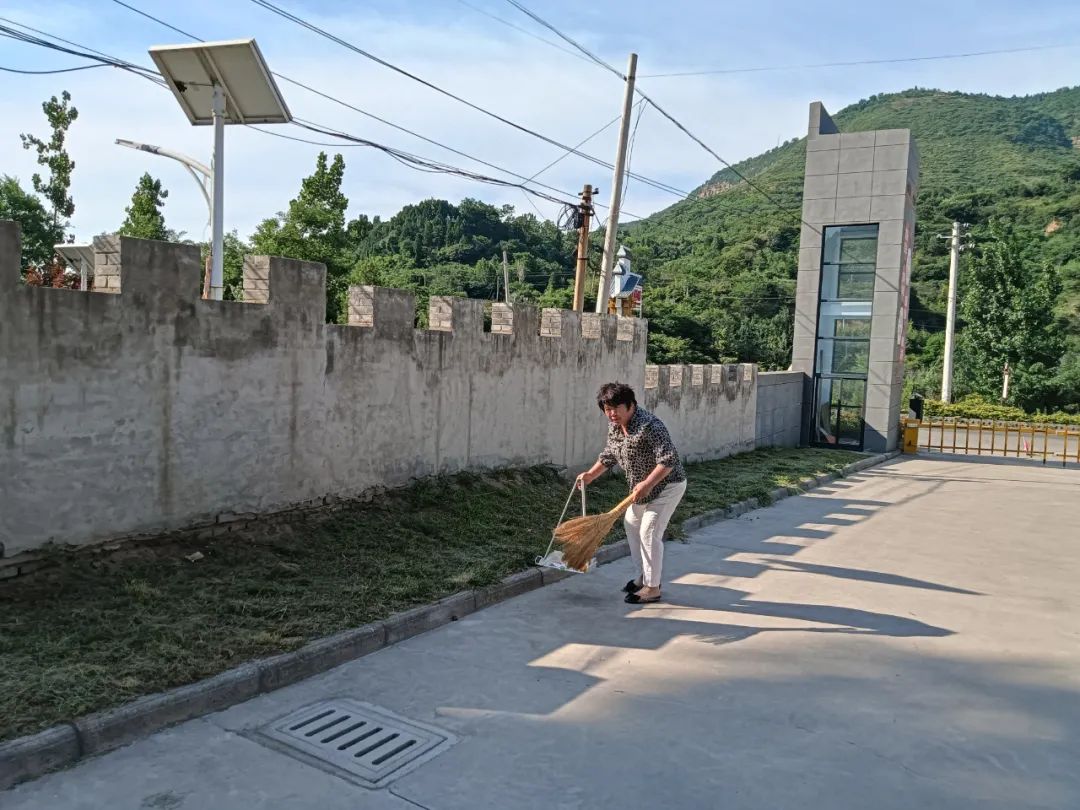 共裕社区物业工作人员打扫社区公共区域的卫生,营造良好的社区环境。