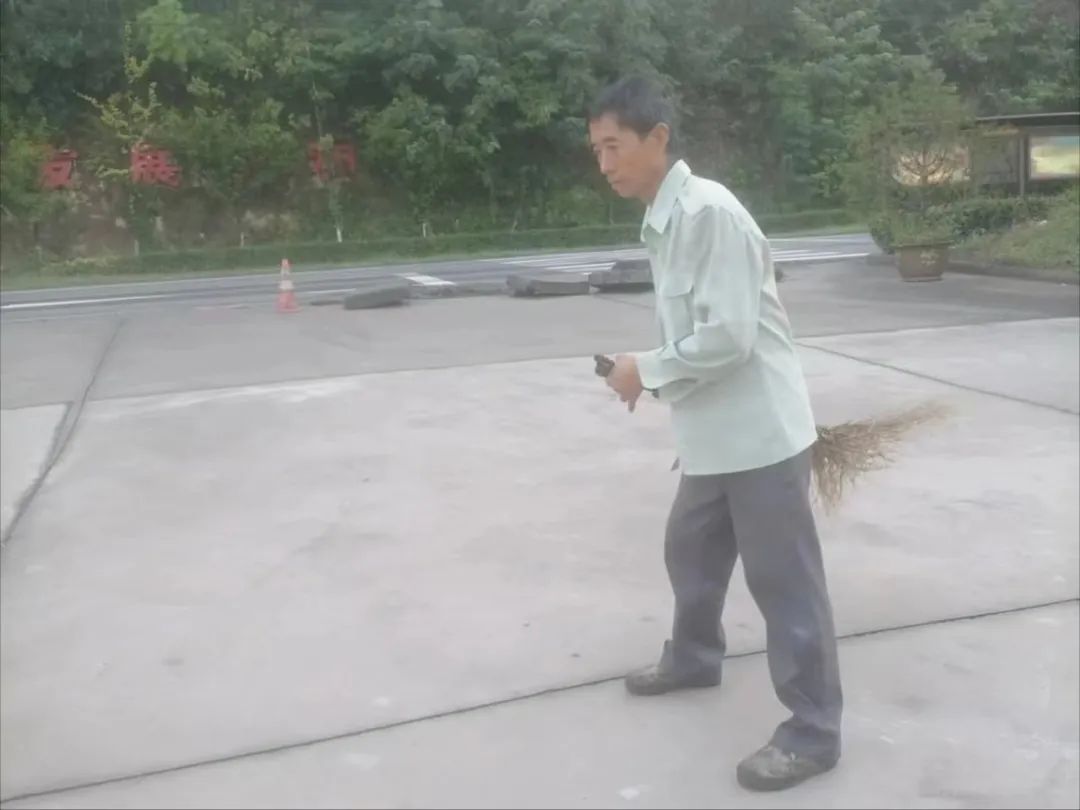 西川社区物业工作人员打扫社区公共区域的卫生,营造良好的社区环境。