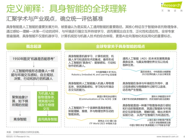 本文是艾瑞咨询发布的《2025 年中国商用具身智能白皮书》(文末附下载方式),系统梳理具身智能定义、发展阶段、产业链与市场趋势,剖析中美竞争格局与典型企业案例,预判万亿级市场规模,为产业布局提供权威参考,兼具战略价值与实操性。