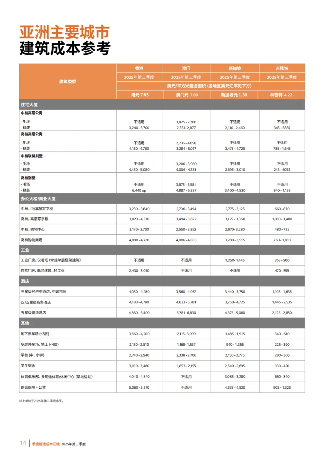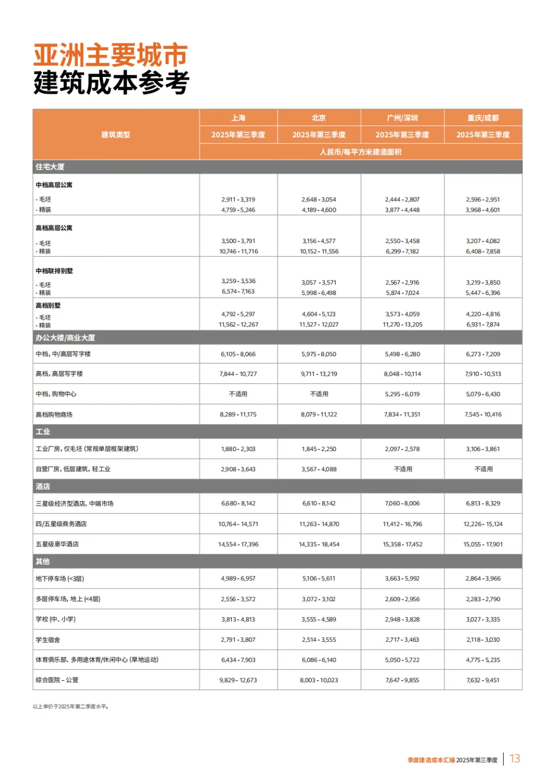 【全球行业报告库】2025第三季度中国内地及香港地区季度建造成本汇编 (附下载)