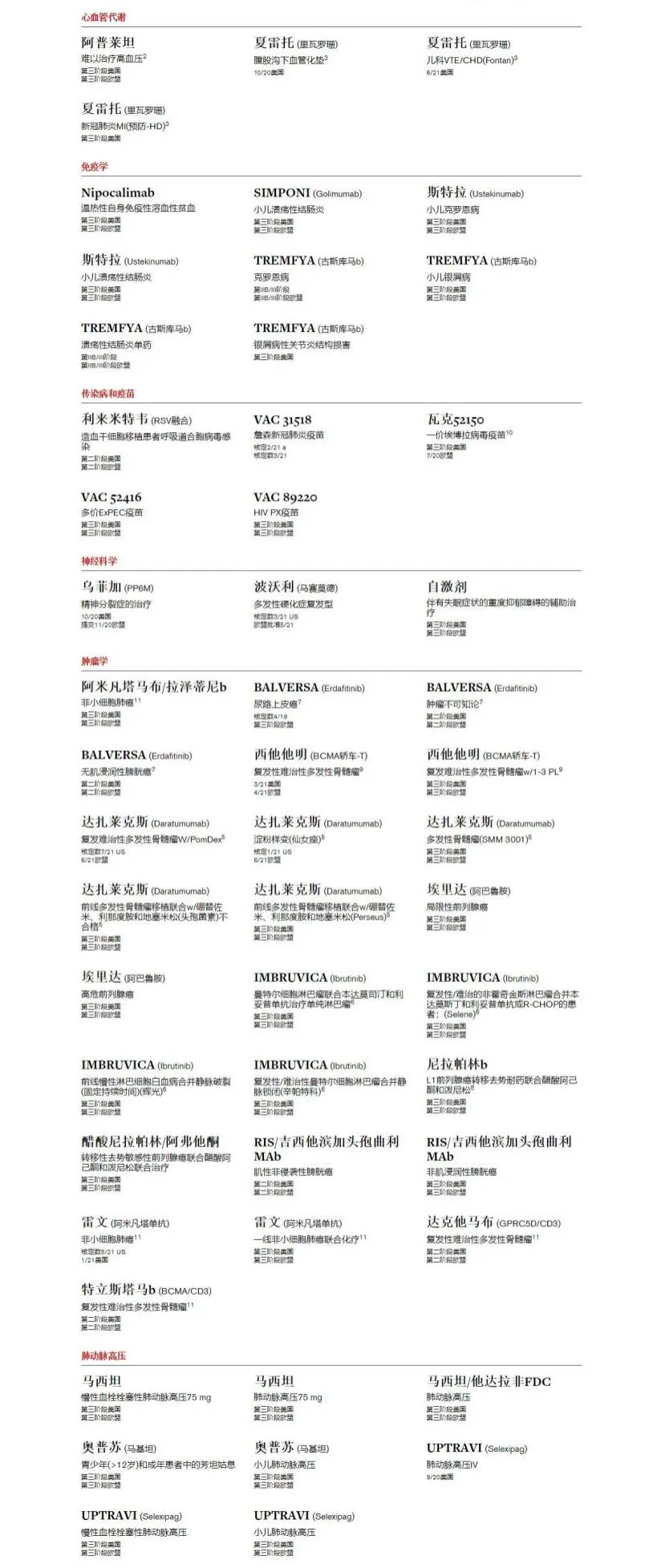 强生2021年上半年制药板块产品增长趋势整体与2020年相似,主要仍然是由Stelara(乌司奴单抗)、Darzalex(达雷妥尤单抗)、Imbruvica(依布替尼)、Tremfya(guselkumab)、Erleada(阿帕他胺)等几款产品的推动。