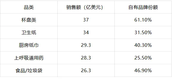 自有品牌销售额:2828亿美元,同比增长 +3.3%