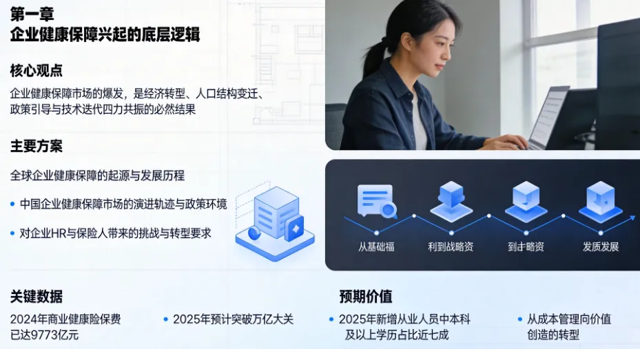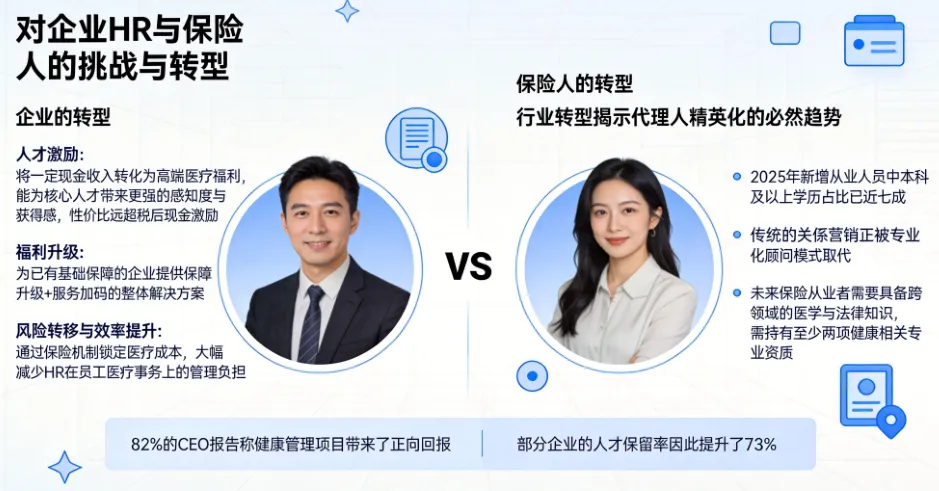 多位行业专家也指出,未来保险公司将进一步发挥健康服务整合者的核心作用,团体补充医疗保险将成为扩容健康险市场的核心路径,而企业HR需从成本管理向价值创造转型,保险从业者也将从销售人员升级为具备医学、法律知识的专业健康顾问。