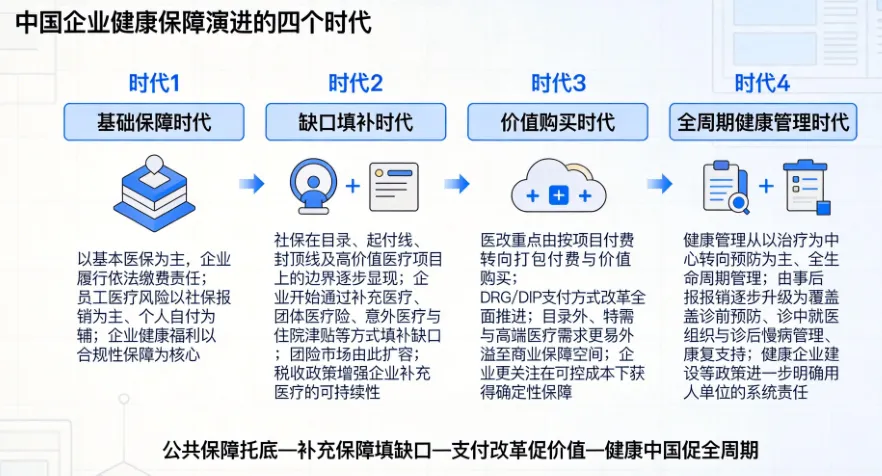 从“基础保障”到“战略资产”,从“标准化福利”到“个性化服务”,从“事后赔付”到“全周期管理”,中国企业健康保障的发展脉络愈发清晰。在健康中国战略的引领下,在技术创新与市场需求的双重驱动下,企业健康保障不再是简单的“成本支出”,而是对“人”的核心投资,是企业实现高质量发展、增强组织韧性的关键抓手。