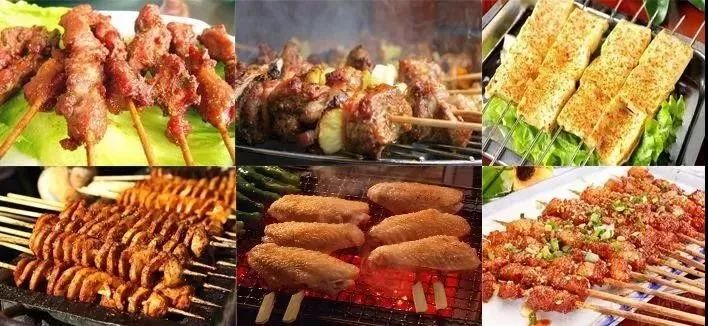 羊肉串、大油边、熟筋、排骨串...