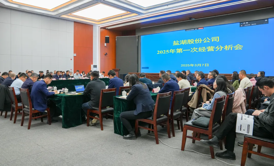 3月7日,盐湖股份公司召开2025年第一次经营分析会,全面总结1—2月公司各项经济指标完成情况,分析查找生产经营中存在的问题和不足,安排部署下一阶段生产经营重点工作,为实现一季度“开门红”奠定坚实基础。公司党委书记侯昭飞提出工作要求,副总裁王盆存主持会议。