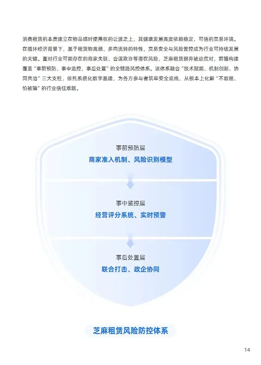 在国家发展循环经济与扩大内需政策双轮驱动下,消费租赁行业迎来发展机遇,2024年我国租赁经济交易规模已突破4.2万亿元,成为绿色消费与消费增长的重要载体。但行业快速扩张中,信息不透明、服务不规范、资金安全风险等问题凸显,制约可持续发展,也影响消费者权益保障。在此背景下,蚂蚁集团旗下芝麻租赁以平台实践为基础,探索“标准引领+技术赋能+生态协同”的发展路径,通过制定行业规范、搭建数字化基建、构建全链路风控体系、优化全周期用户服务,推动行业从自发探索走向规范发展新阶段。本报告以芝麻租赁实践为样本,系统梳理消费租赁行业在标准建设、数字基建、风险防控、服务升级方面的探索与成效,为行业健康发展提供实践参考与路径指引,助力释放租赁经济在绿色消费、资源循环中的社会价值。