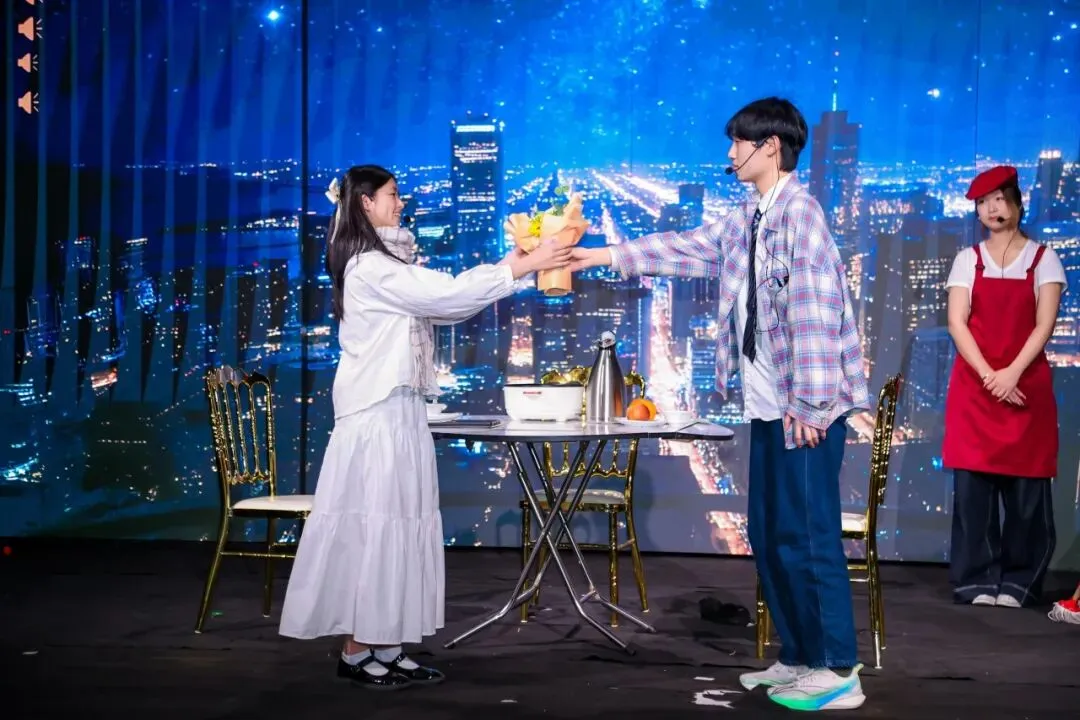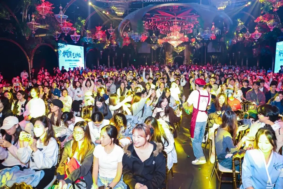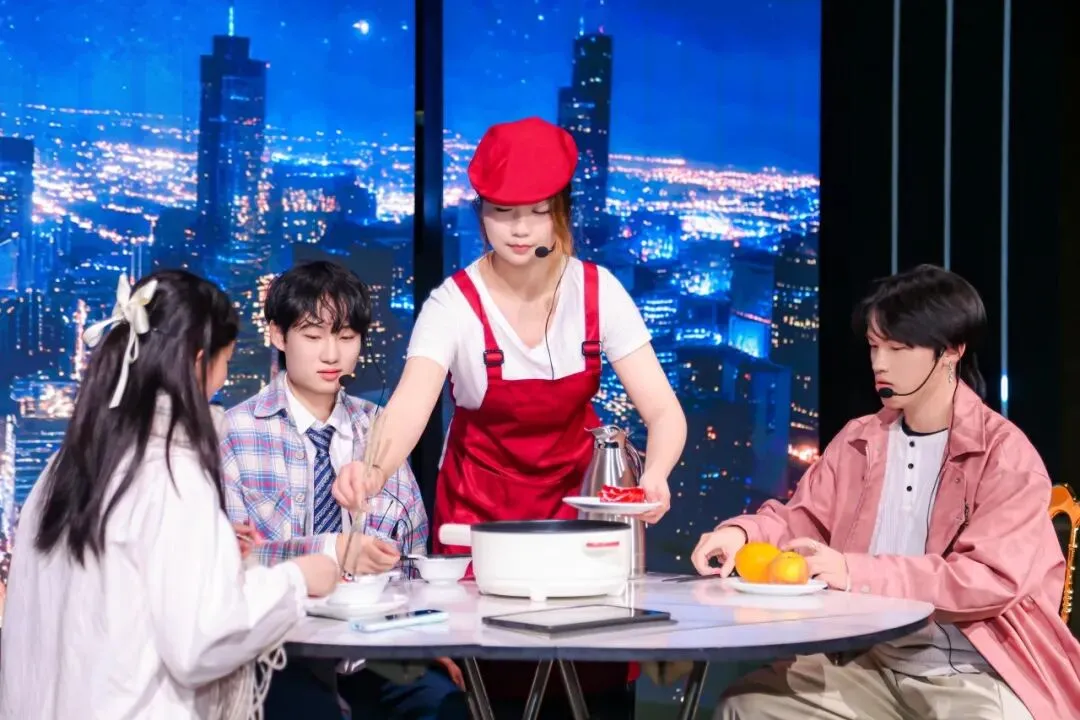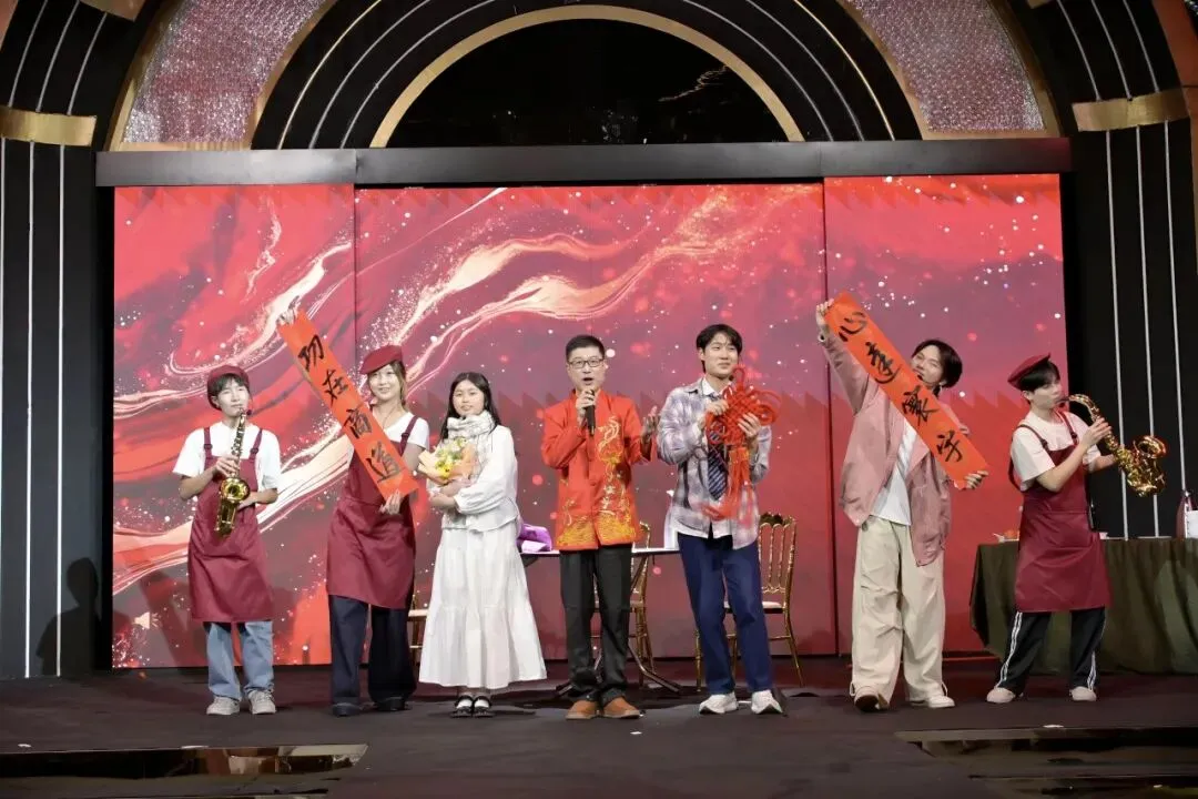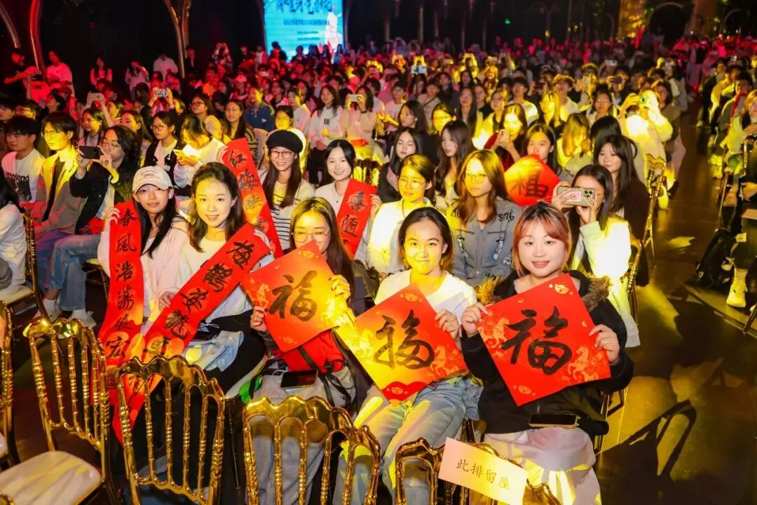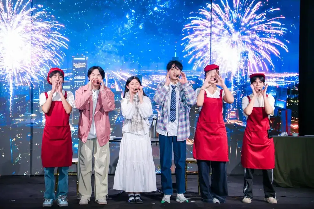登上潮薇汀的大舞台,六位演员 @朱皓元 @薛博雯 @许源锋 @纪婉烨 @陈泽华 @蒋星宇 倾情演绎的《恋恋火锅店》,在一顿热气腾腾的火锅里,涮出了一段青涩的校园恋情——姐姐的神助攻、弟弟的勇敢表白,让人忍俊不禁又心头一暖。演出尾声,文兵老师的《好运来》与小品无缝衔接,六位演员秒变“气氛组”,冲到观众席洒下糖果、千纸鹤、对联……现场尖叫与笑声齐飞,直接把晚会推向沸点。