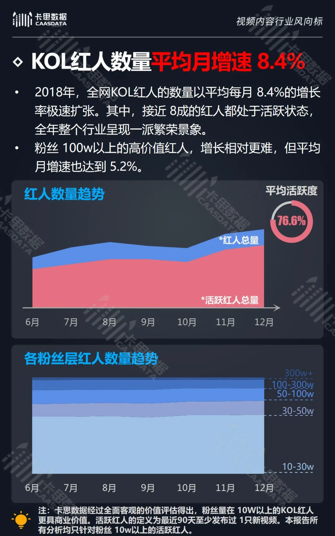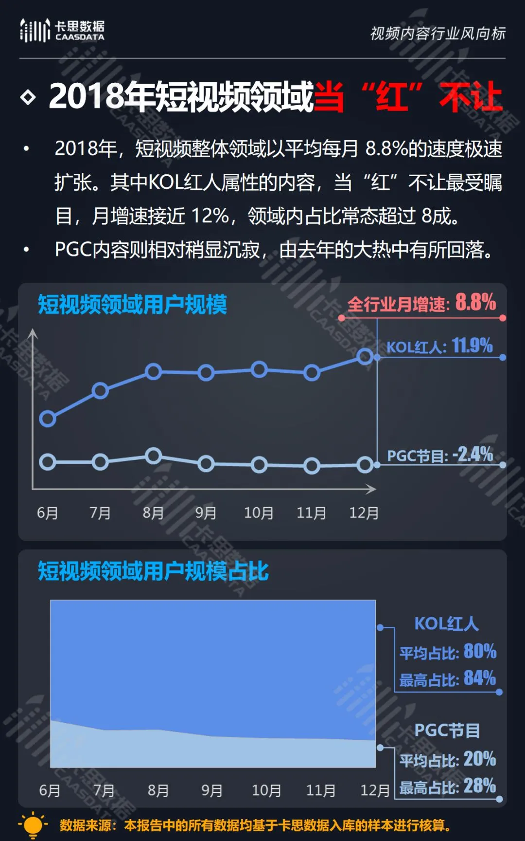 在此背景下,卡思数据对整个2018年KOL红人行业的数据进行了深度研究,旨在通过数据还原行业全貌,为从业者提供客观第三方的数据参考。以下为内容概览: