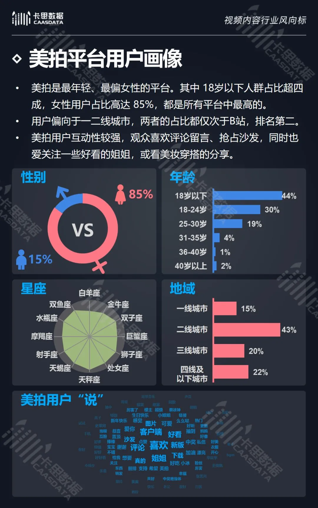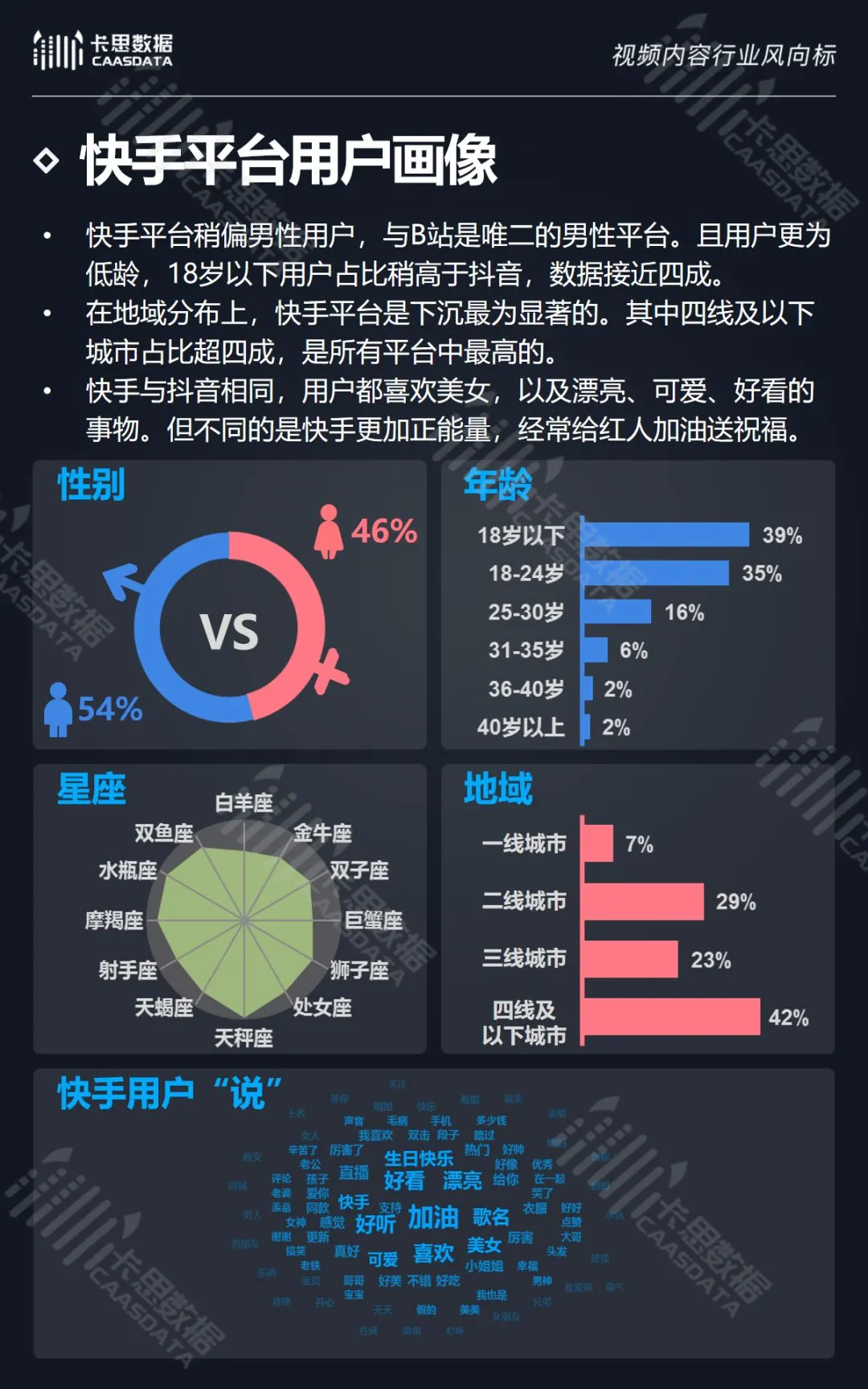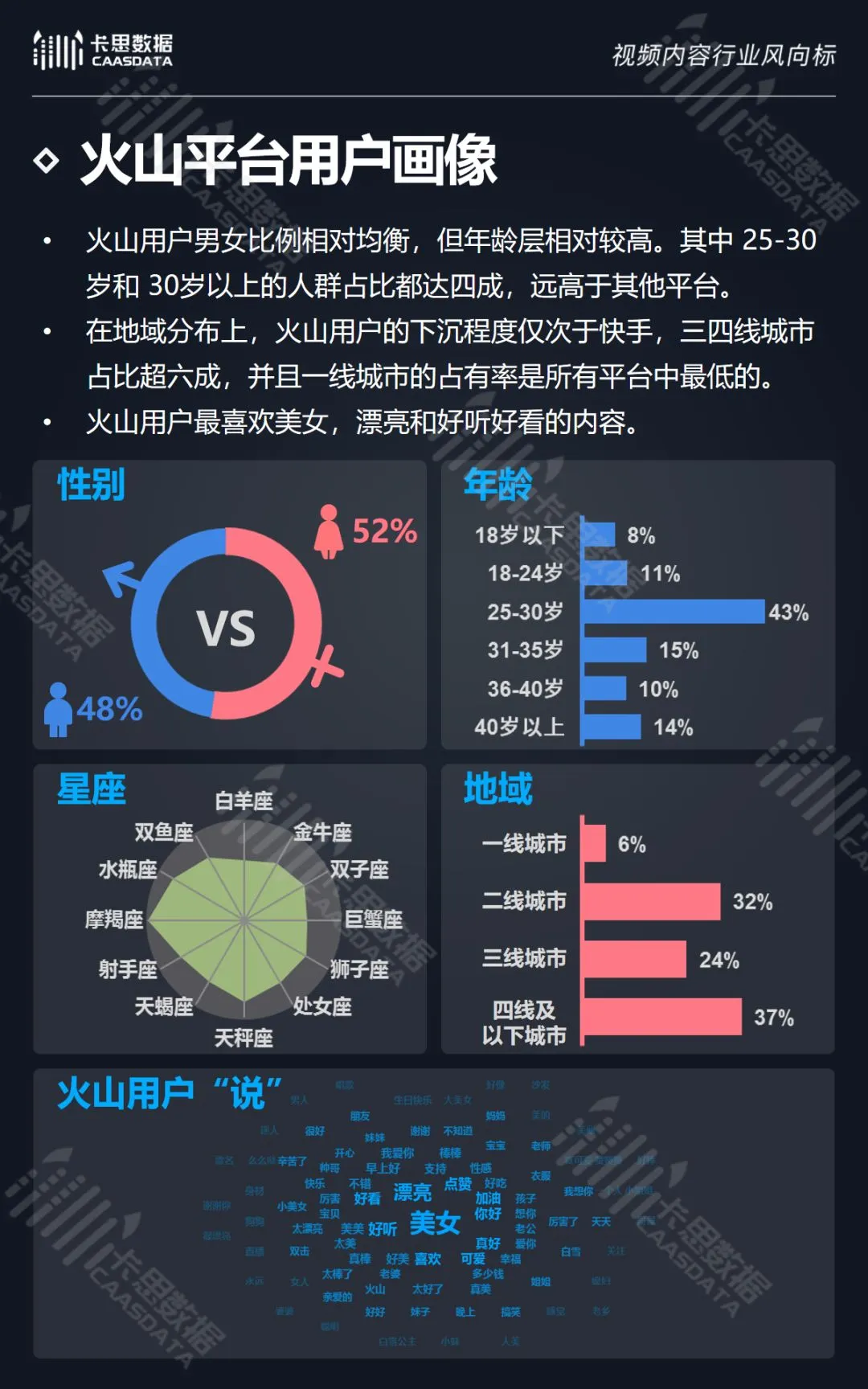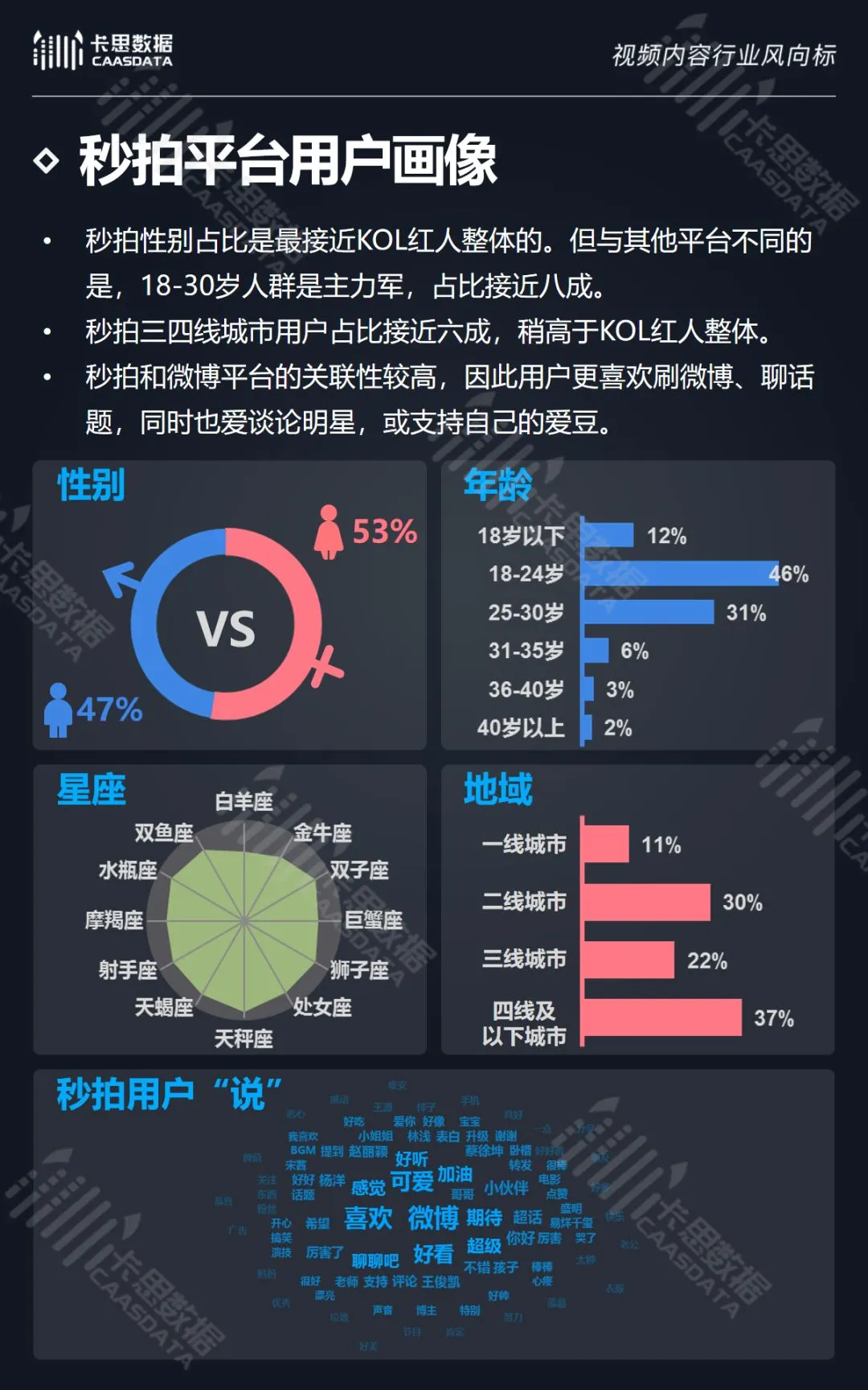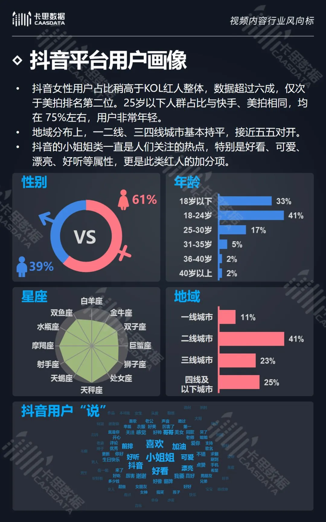 除此之外,卡思数据还对6大KOL短视频平台的强势分类及平台用户画像进行了详细分析。