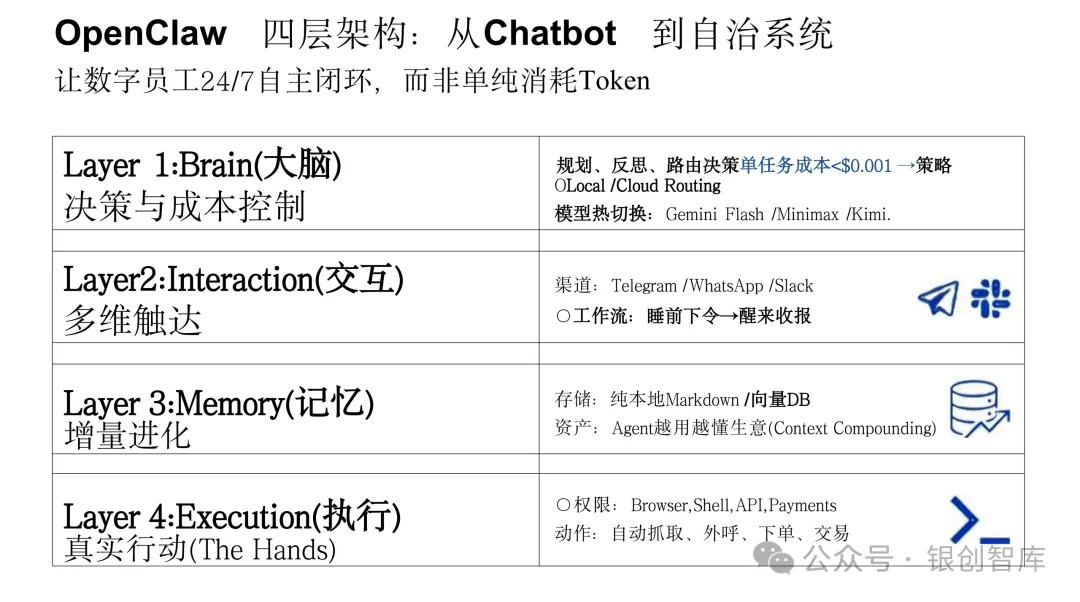 本报告立足2026年OpenClaw生态发展现状,从技术架构、生态格局、变现路径到未来趋势展开全面剖析,既解读其范式重塑的核心价值与技术全景,也直面其发展中的风险与挑战,更探索其从工具到硅基生命体、从单一项目到数字经济体的进化可能。在人机协同走向人机共生的时代,OpenClaw所代表的本地主权AI模式,不仅为个人与企业带来了生产力的全新可能,更预示着智能体经济的未来方向——这场变革中,唯有平衡创新与风险、实现技术与治理的协同进化,才能真正开启人工智能从 “消耗” 到 “增殖” 的硅基新纪元。
