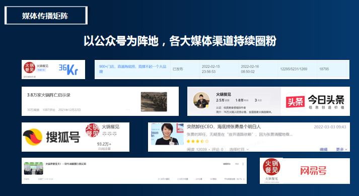 我们依托行业上百家优质供应链、渠道资源,汇聚上游与品牌的双方需求,经过认真筛选,优先对接给餐创联会员,让其获得资源的途径更加高效、安全,具有性价比。对于中小品牌来说,找到发声渠道迫在眉睫,他们渴望被看见、被认可,同时它们也是火锅赛道的重要组成部分,他们的拼搏、创新、成果值得被看到。我们依托平台全媒体矩阵及私域阵营,为餐创联会员发声,追综品牌故事,讲述门店经营思路,增加品牌的曝光、传递品牌文化。
