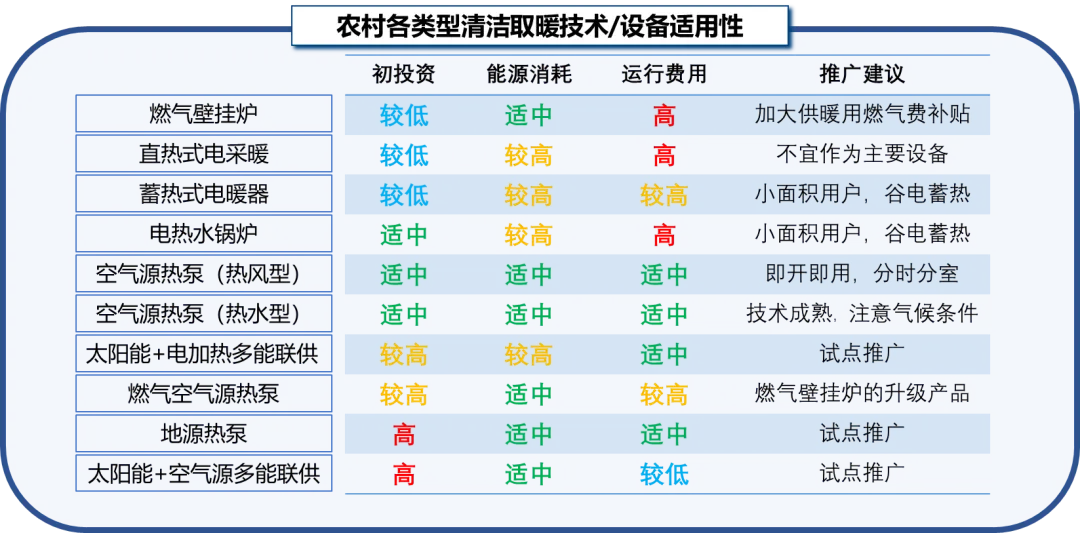现有清洁取暖设备的寿命问题也不容忽视,电暖气、空气源热泵、燃气壁挂炉等清洁取暖产品寿命短则五六年、长则十一二年,随着时间的推移,这些设备将陆续达到设计寿命,若没有及时的资金更新,将导致设备性能下降甚至报废。这种情形在实施清洁取暖工作较早的城市已经开始显现,设备的更新换代需要大量的资金投入,而缺乏稳定的资金来源将使这一问题变得更加棘手。因此,在巩固存量和有序新增的过程中,我们必须更加重视清洁取暖工作的可持续性。这包括建立长效的清洁低碳取暖方案,兼顾减污降碳协同的技术方向,推动农村用能的电气化趋势,以及构建以可再生能源为主的现代农村能源体系。同时,还需要各级政府进一步完善政策制度,通过政策引领的方式促进清洁取暖工作与成效长效、可持续。